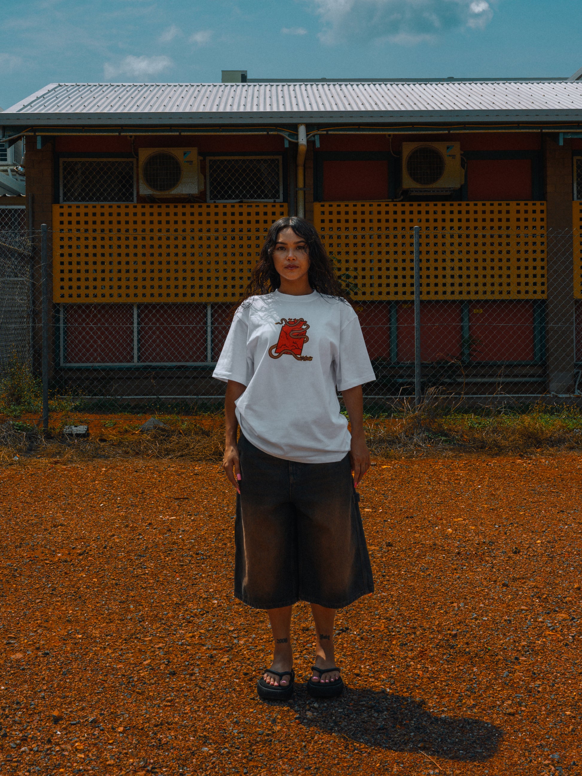 • White t-shirt, also available in Black