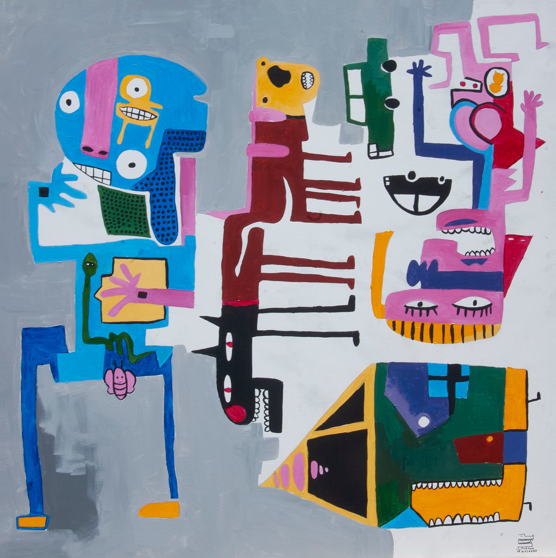 Tyrown Waigana is a multi-disciplinary artist and designer whose practice spans painting, illustration, sculpture, animation and graphic design. He is connected to the Wandandi Noongar people of South West Western Australia and the Ait Koedal clan from Saibai Island in the Torres Strait. Raised in the suburbs surrounding East Fremantle (Walyalup), Tyrown draws inspiration from both his cultural roots and the creative energy that surrounded him growing up. His approach is playful, expressive and deeply personal, often blurring the line between tradition and experimentation.