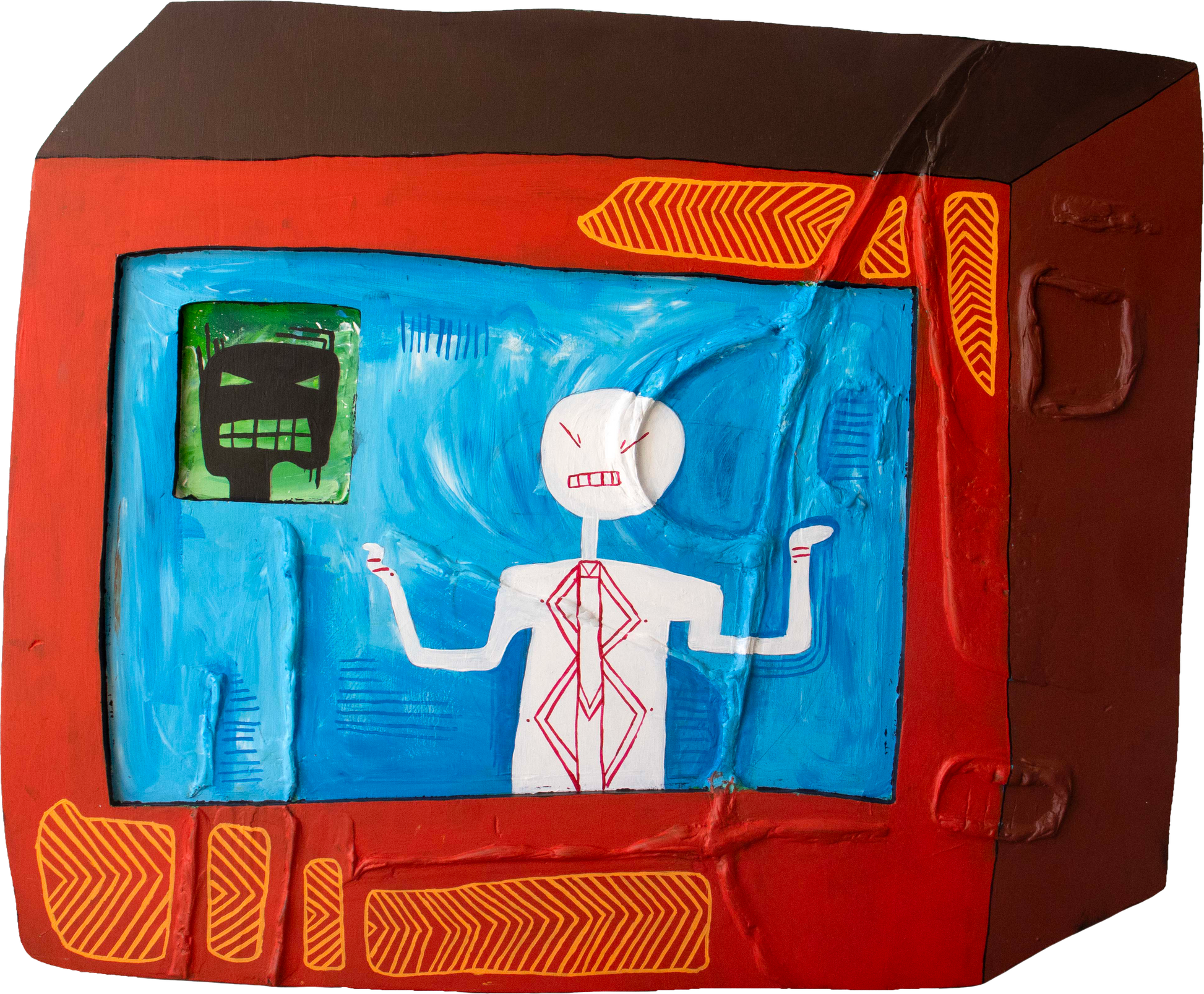 His work is shaped by the belief that creativity is a way of passing through time, a means of making sense of the world, and a way to honour knowledge systems that exist beyond written language. While not everything he creates is directly tied to culture, it remains the driving force behind his practice. Tyrown brings a raw and honest energy to everything he does — blending humour, identity and heritage in work that feels both grounded and imaginative.